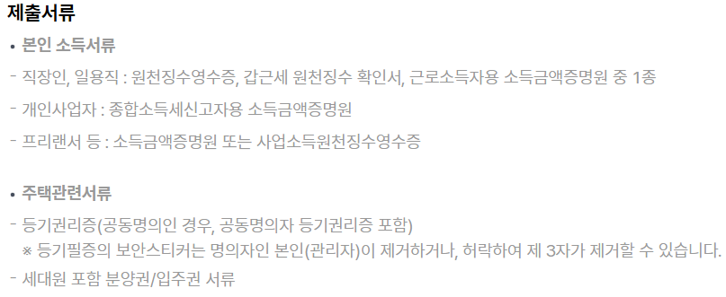 - 1개월 이상 근무한 직장인 또는 소득금액증명원 발급이 가능한 개인사업자