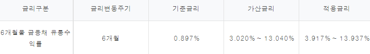 기준금리는 0.897%에 가산금리를 더해 최종 적용금리가 나옵니다.