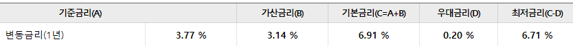 대출 금리는 아래와 같습니다.