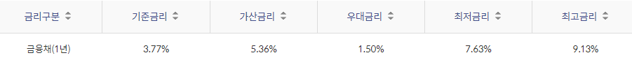 대출 금리는 아래와 같습니다.