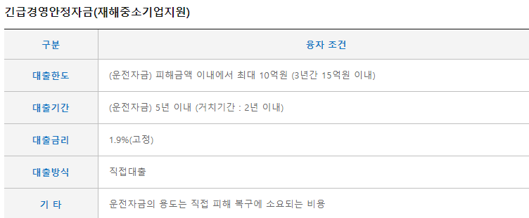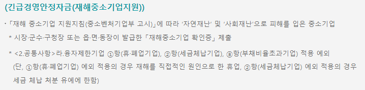 긴급경영안정자금(재해중소기업지원 정보)