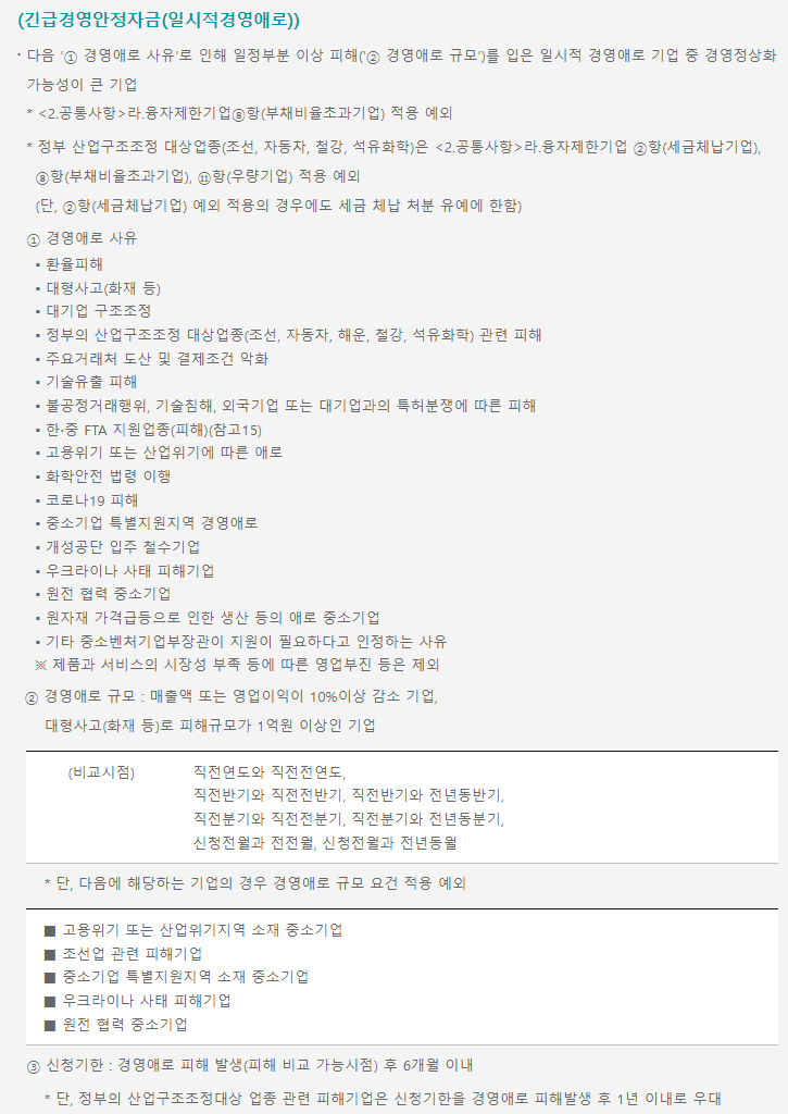 긴급경영안정자금(일시적경영애로 정보)