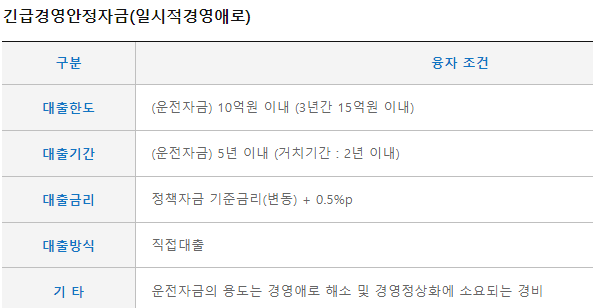 긴급경영안정자금 지원대상 한도 금리 신청방법 정리
