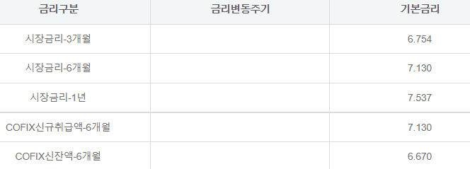 대출금리는 아래와 같습니다.