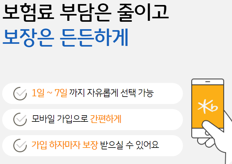 KB손해보험 하루 자동차보험 보장 가입절차 등 정보 정리