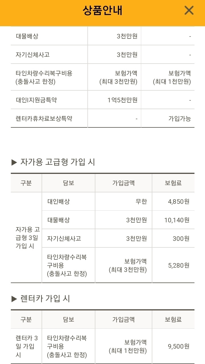 단 저는 하루자동차보험은 기본 보장만 해도 충분하다고 생각하는 사람 중 한명입니다.