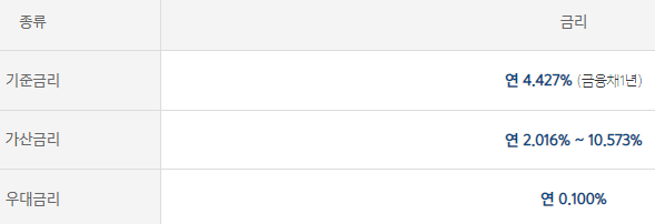 대출금리는 아래와 같습니다.