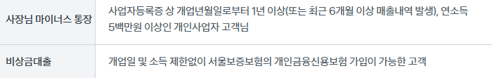개인사업자일 경우 개업년월 1년 이상이어야 하며, 비상금소액대출의 경우 따로 제한 없이 쉽게 가능하며 아래 조건을 충족하면 대출 신청이 가능합니다.