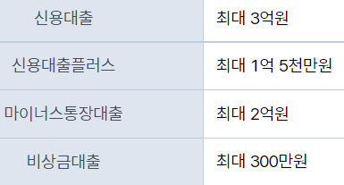 대출 한도는 아래 상품별로 다릅니다.