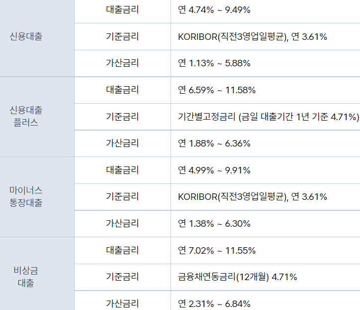 대출금리는 아래와 같습니다.