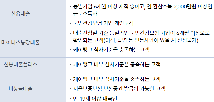 케이뱅크 신용대출 자격 조건