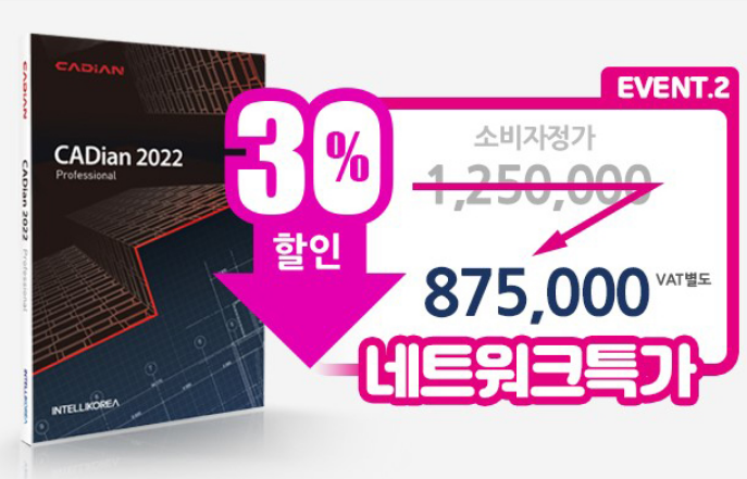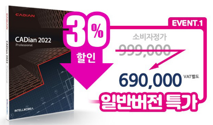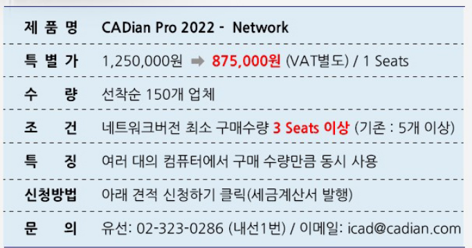 현재 CADain프로그램의 가격은 약 1백만원 수준이지만 할인 행사를 진행중에 있습니다.