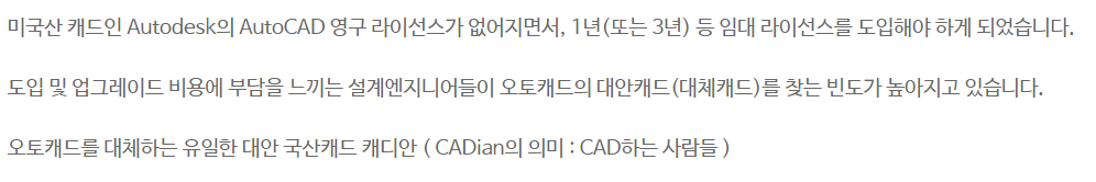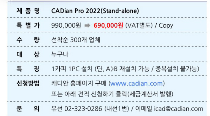 CADian 공식 홈페이지를 통해 무료 체험 이용 후 마음에 드신사면 유료 사용전환을 고려해보시길 추천드립니다.