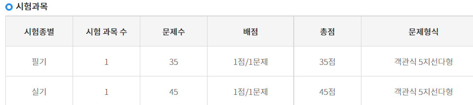 모든 시험은 객관식으로 출제되며, 합격 기준은 100점 만점 기준 60점 이상이어야 합격입니다.