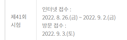 현재 남아있는 요양보호사 시험일정은 41회 시험으로 인터넷 접수는 8월 26일부터 9월 2일까지이며,