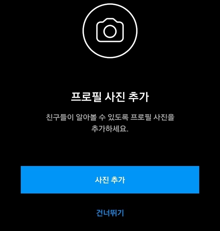 연락처를 동기화하지 않고 계속하기를 누르면 가입하기 뜹니다. 가입이 완료 되고 프로필 사진 추가부터, 페이스북 친구 찾기 건너 뛰어야 합니다. 본인이 비밀 부계정을 만들려고 하는 것이기에 개인정보는 아예 안 들어가게끔 설정을 마치시면 됩니다.