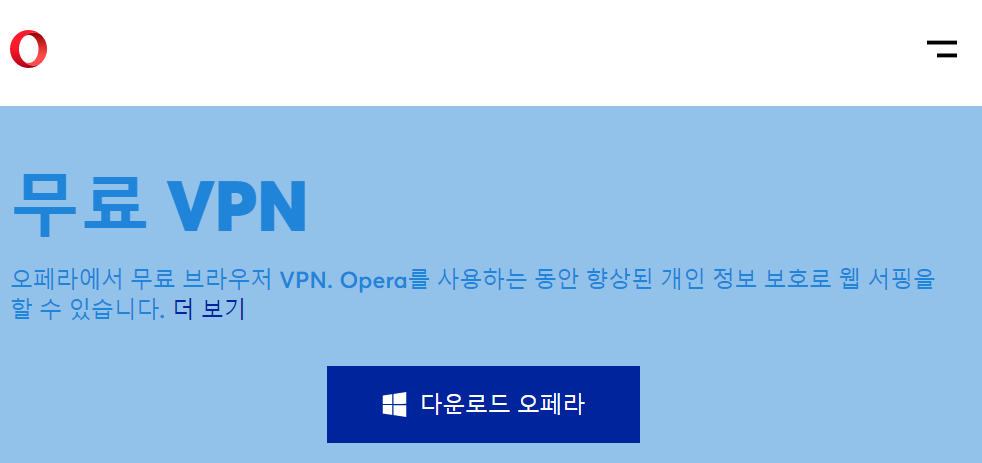 무료 VPN | VPN이 내장된 |가있는 브라우저 다운로드 | 오페라 (opera.com)