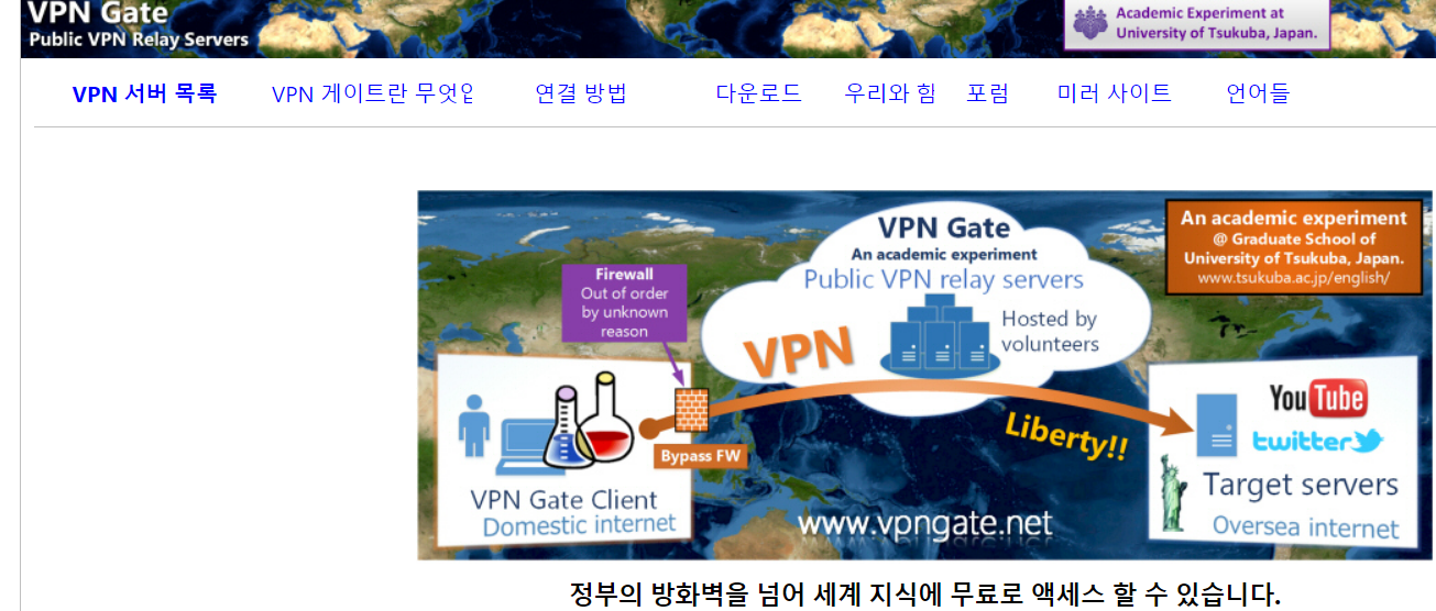 VPN Gate - 일본 쓰쿠바 Univ 의 Public Free VPN Cloud