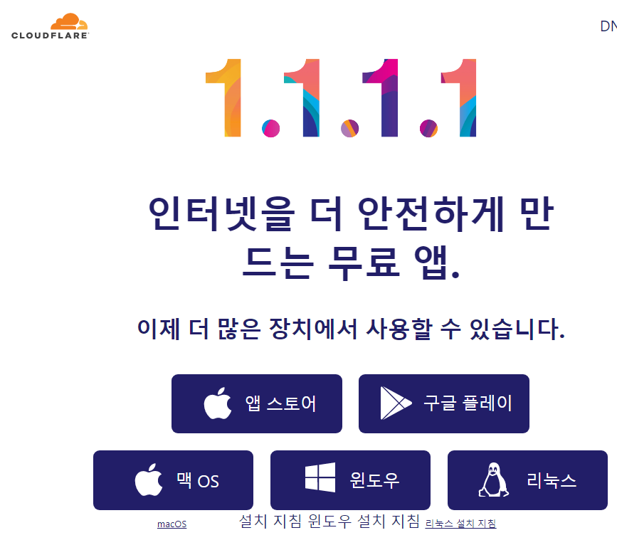 1.1.1.1 — 인터넷을 더 빠르게 만드는 무료 앱.