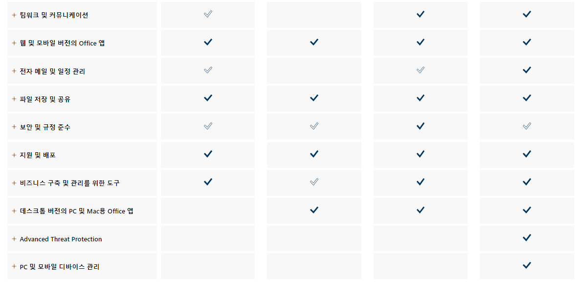 MS 오피스는 가정용, 비즈니스용으로 구분되어 있습니다.