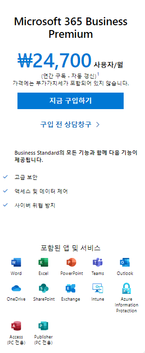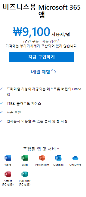 MS 오피스 가격표
