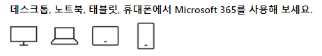 MS 오피스는 Windows, Mac OS, IOS, Andorid 호환이 가능하며 데스크톱 노트북 태블릿 휴대폰 등에서 다 사용이 가능합니다.