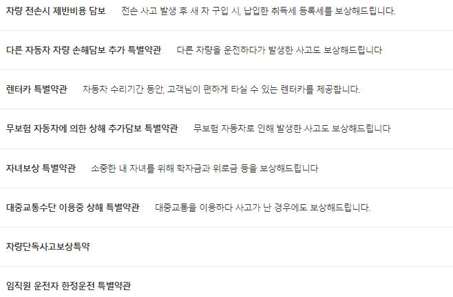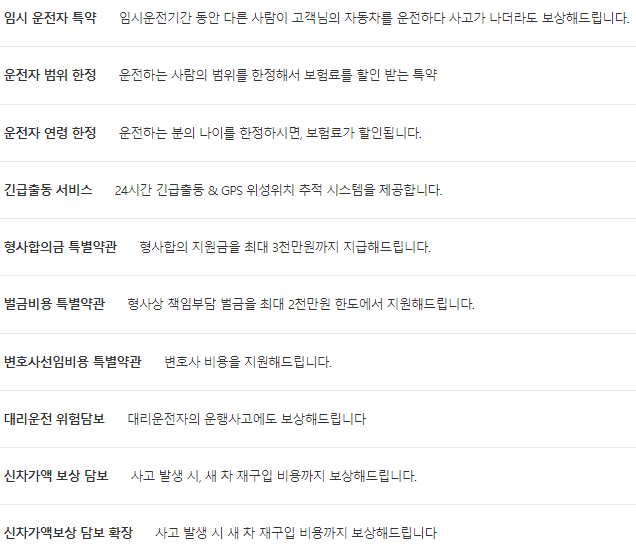 - 사고 시 받을 수 있는 보상에는 어떤 것들이 있는지 꼼꼼히 확인