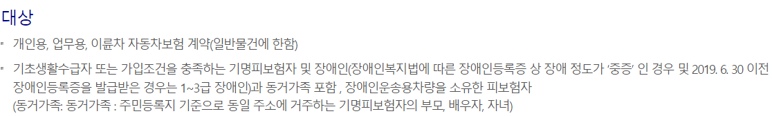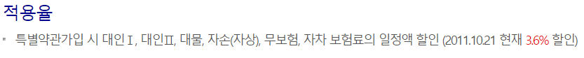 기초생활수급자 또는 차상위계층 등 서민을 위한 특약 가입 시 보험료에서 3.6%를 추가 할인해줍니다.