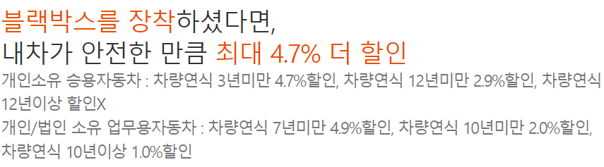 블랙박스를 장착한 차량이라면 보험료를 최대 4..7% 할인해줍니다.