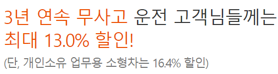 단 3년 연속 무사고 할인율은 피보험자의 무사고 연속기간 및 연령,성별,차종 등에 따라 달라집니다.
