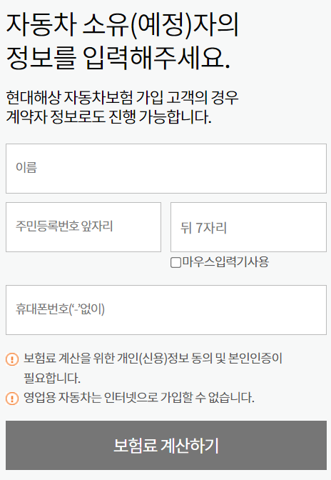 현대해상 다이렉트 자동차 보험 보험료 확인