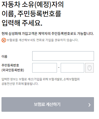 삼성화재 다이렉트 자동차보험 보험료 확인 및 보험가입