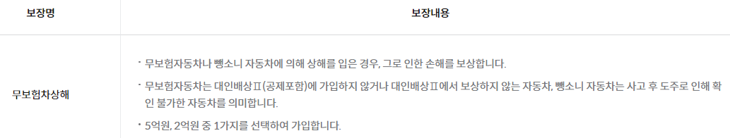 무보험차상해 = 무보험자동차 및 뺑소니 자동차에 의해 상해를 입은 경우 보상