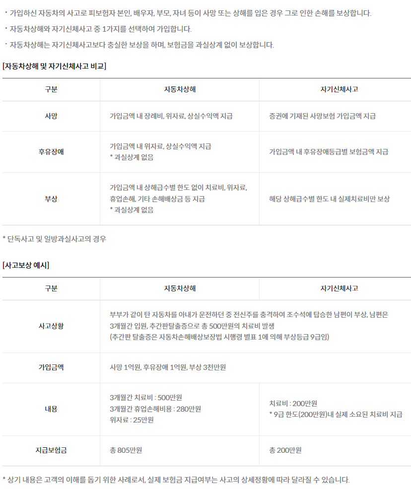 자동차 상해 및 자기신체사고 = 나와 내 가족이 상해를 입은 경우 보상