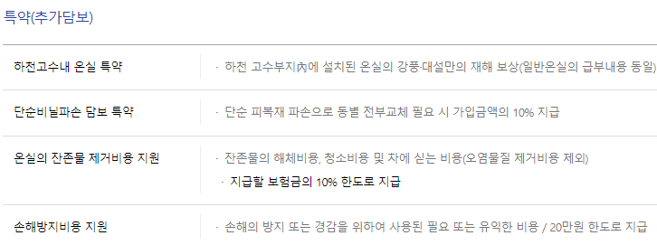 집이 부서져도 집중 호우, 홍수로 인해 침수 및 비닐하우스 파손 시에도 보상이 됩니다.
