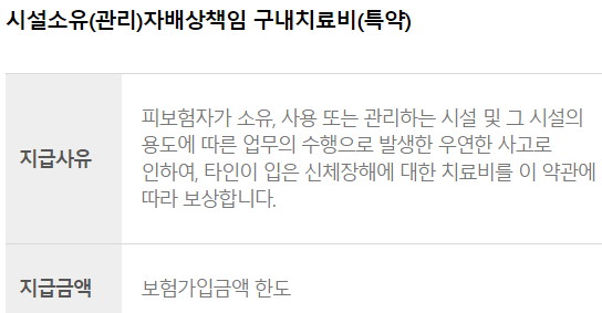 소규모 음식점은 (주)캐롯손해보험사를 통해 가입이 가능하며, 재난배상책임 의무보험과 동일하게 대인 1.5억원(사고당 무한) , 대물 10억원까지 보장 받을 수 있습니다.