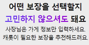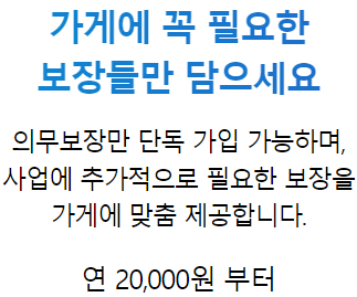어플이나 홈페이지를 통해 가게 특성 정보만 입력하면 필요한 보장을 추천하며, 구경만 하셔도 되고 기본의무보장가입만 하셔도 됩니다.