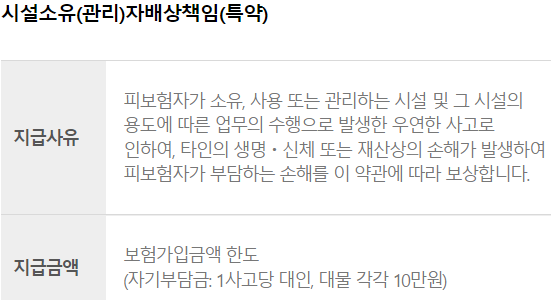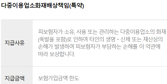 참고로 재난배상책임 의무보험 가입 대상은 100m2 이상 일반(휴게)음식점, 숙박업소, 주유소 ,미술관 등이 있습니다.