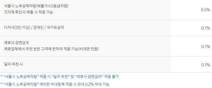 우대금리는 최대 0.6%까지 적용가능하며 우대금리 조건은 아래와 같습니다.