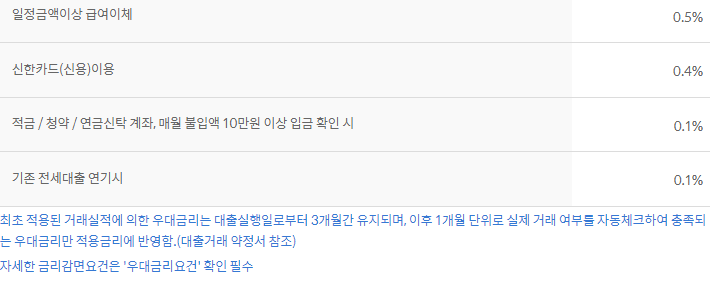 우대금리 조건은 아래와 같습니다.