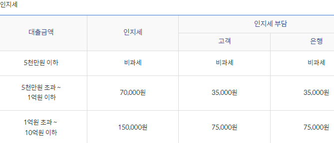 대출 기타비용 및 유의사항