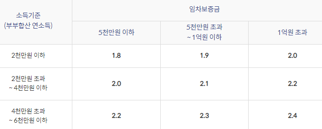 - 4천만원 초과 ~ 5천만원 이하소득일 경우 연 2.1%