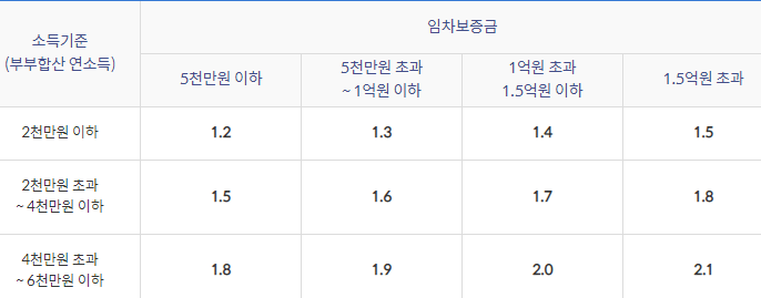 단 신혼가구,혁신도시 이전 공공기관 종사자,타지역으로 이주하는 재개발 구역내 세입자,다자녀가구,2자녀가구인 경우 부부합산 연소득 6천만원 이하까지 가능합니다.