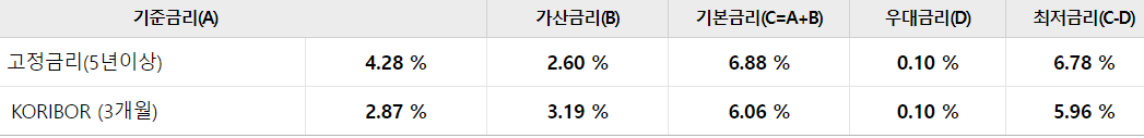 대출금리는 고정금리 / 변동금리 둘 중 하나이며 아래와 같습니다.
