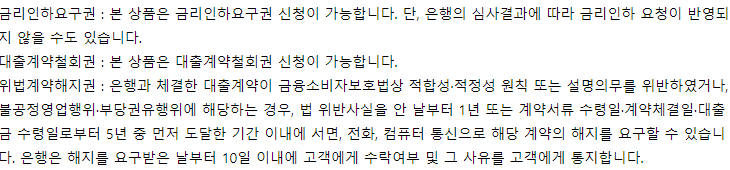 대출 부대비용 및 기타사항