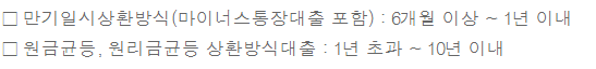 만기일시상환방식의 경우(마이너스 통장대출 포함): 6개월 이상 1년이내입니다.
