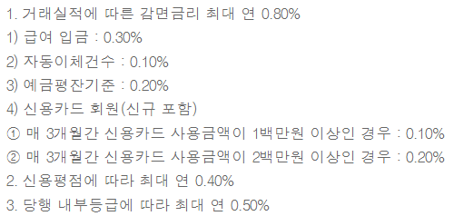 우대금리 조건은 아래와 같습니다.