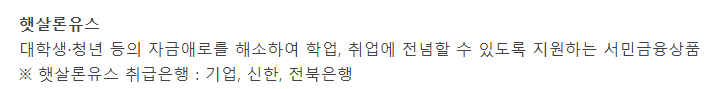 대학생 및 청년 등의 자금부족을 해소하여 학업 및 취업에 전념할 수 있도록 지원하는 서민금융상품입니다.