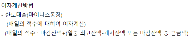이 상품은 마이너스통장 방식의 상품으로 마이너스통장대출은 대출한도가 얼마가 나오던 쓴 만큼의 금액에 대해서만 대출의 이자가 발생합니다.