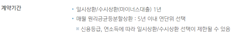 대출한도는 최소 1백만원 이상 최대 5천만원 이내로 약정이 가능합니다.